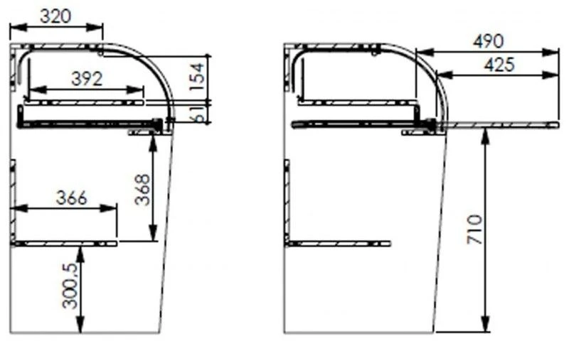 – Tablette fixe basse : L 81.6 x P 35 cm