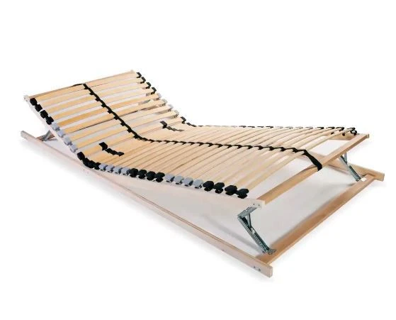 D’une hauteur de 9 cm, il est composé de 28 lattes avec 4 lattes doubles à fermeté réglable pour un couchage de 90 x 200 cm. Il est également équipé d’un ruban de renforcement central et de capuchons en caoutchouc SBS pour le maintien des lattes.