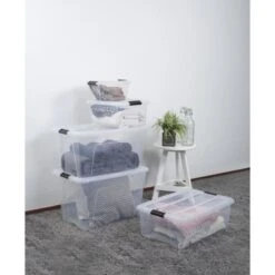 IRIS OHYAMA Lot De 6 Boîtes De Rangement Empilables – Transparent – 30 L – 58 X 39,5 X 20,5 Cm
