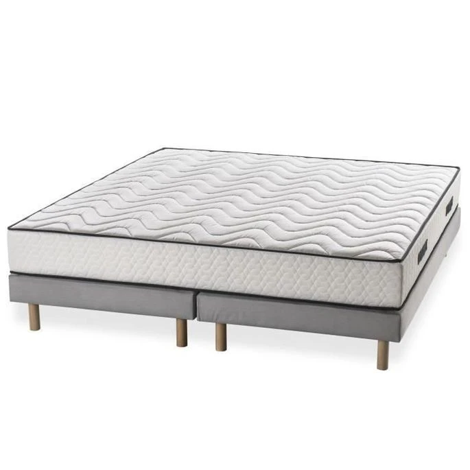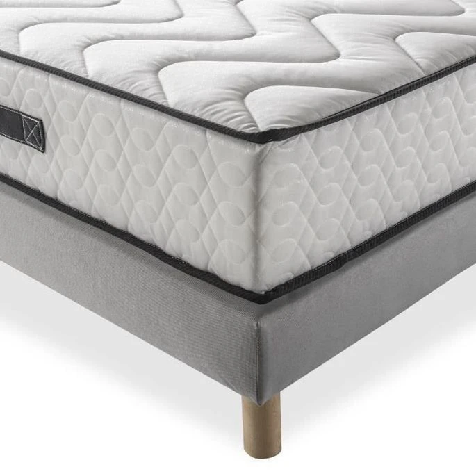 Ensemble Matelas Et Sommier Tapissier Gris Foncé Tissu 90×200 Cm