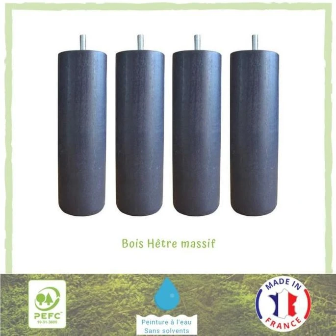 Jeu De Pieds Carrés L 7 Cm X L 7 Cm H 14,5 Cm – Gris Métal – Lot De 4
