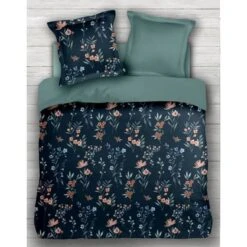 LOVELY HOME Parure De Couette 200×200 Cm + 2 Taies D’oreiller 65×65 Cm – 100% Coton BAROQUE – Bleu