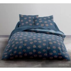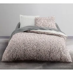 SOLEIL D’OCRE Parure Housse De Couette Flowers – 140 X 200 Cm – Taupe – 100% Coton 57 Fils/cm²