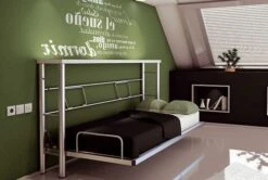 Armoire Lit 160×200 Cm Escamotable Verticale Avec Canapé Frêne Blanc Et Porte Verte Kanto