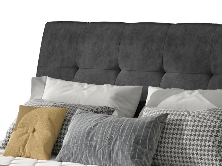 La disposition classique est renforcée par la décoration de bon goût de la tête de lit, dont les contours sont obtenus par le rembourrage doux et flexible en forme de mousse T25. Les pieds bas soutiennent le lit dans son style simple et élégant.