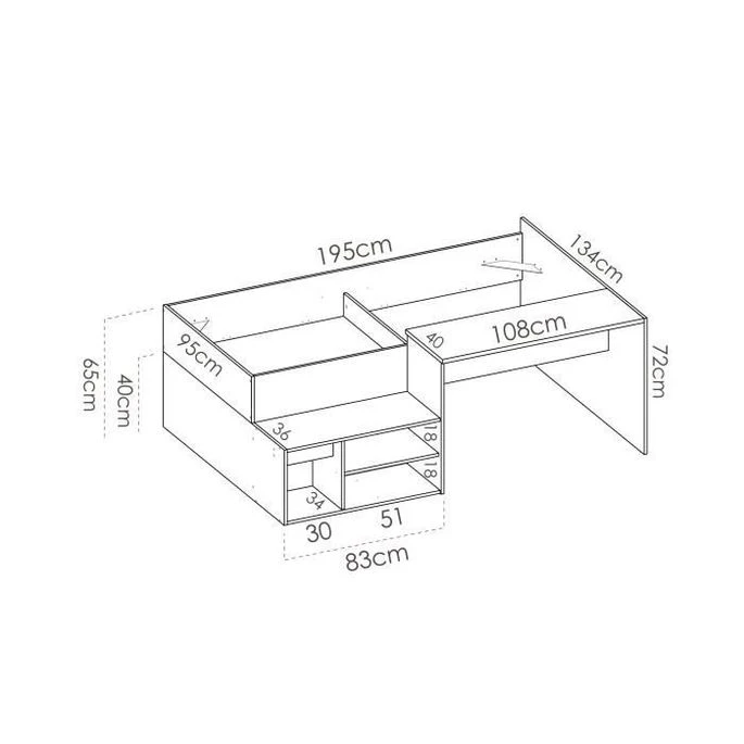 Dimensions totales : L 195 x P 134 x H 72 cm
