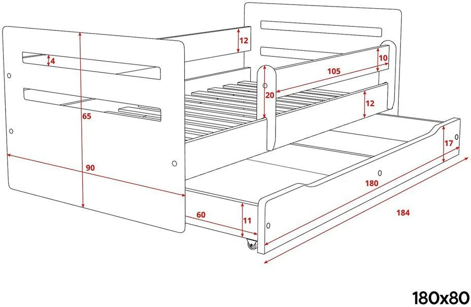 Tiroir de rangement : en option ne peut pas accueillir de matelas