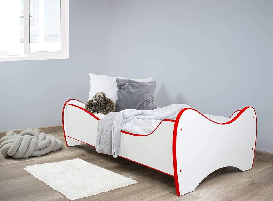 fabriqué en UE. Qualité contrôlée à chaque étape de la production. Fabriqué à partir de panneau de meubles de haute qualité qui rend le lit à la fois robuste et léger. Lattes en bois suspendues incluses.