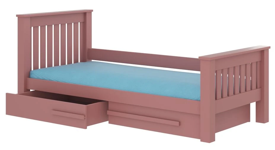 Fabriqué avec soin en bois de pin vernis mat rose robuste et esthétique.nous utilisons des vernis écologiques, peints au pistolet, pour protéger le lit. Grâce à trois couches de vernis appliquées avec précision, notre lit garantit une résistance exceptionnelle aux dommages mécaniques et à divers types de salissures.