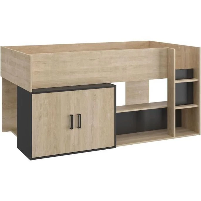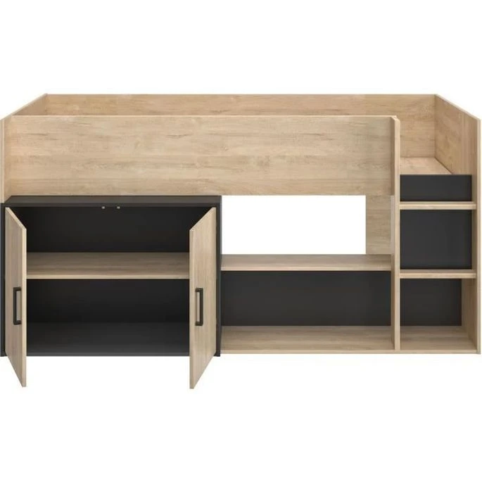 Bloc de rangement 2 portes sous le couchage avec 1 tablette de dépose en partie haute.
