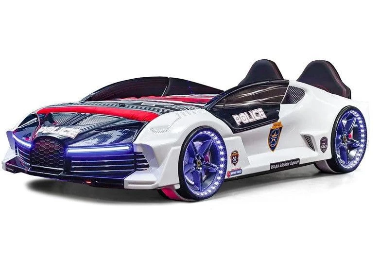 Les phares de ce lit voiture fonctionnent grâce aux lampes LED intégrées