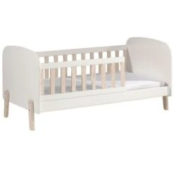 Lit Combiné Enfant Avec Sommier Contemporain Coloris Naturel Et Blanc + Armoire – L 90 X L 190 Cm