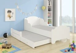 Lit Enfant Bois Blanc 2 Couchages 70×140 Ou 80×160 Cm – Sommier Et Matelas Inclus – Madale