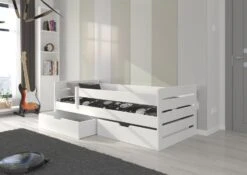 Lit Enfant Bois Pin Blanc 90×200 Cm Avec 2 Tiroirs De Rangement Kiko