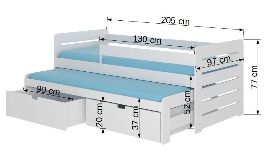 En plus de ses fonctionnalitĂ©s d’espace de couchage, notre lit gigogne est conçu pour maximiser le rangement dans la chambre de vos enfants. Avec deux coffres de rangement pratiques de L 90 x P 80 x H 18 cm chacun, vos enfants pourront facilement organiser leurs jouets, livres et autres effets personnels, favorisant ainsi un espace de vie bien ordonnĂ© et agrĂ©able.
