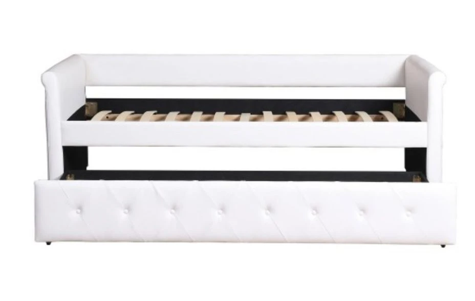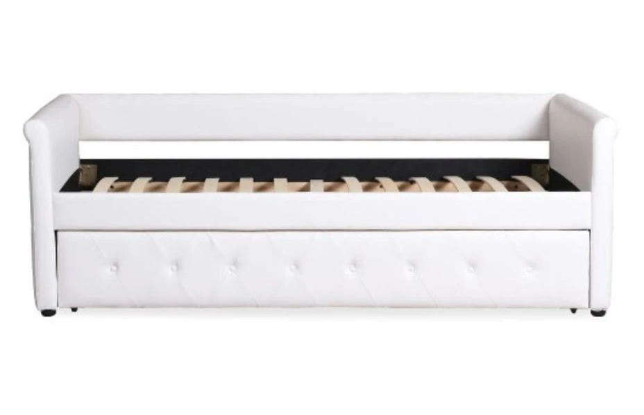 Il suffit de tirer en un seul geste la partie basse du lit vers l’avant afin de révéler un autre sommier à lattes pour une personne !