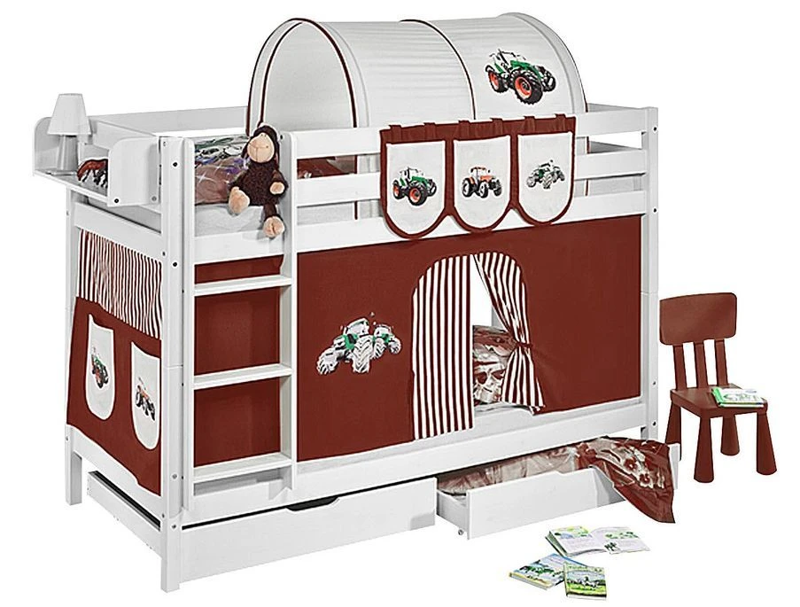 Lit mezzanine avec protection contre les chutes et échelle conformément aux normes EN 747 relatives aux lits mezzanines et aux lits superposés pour enfants.
