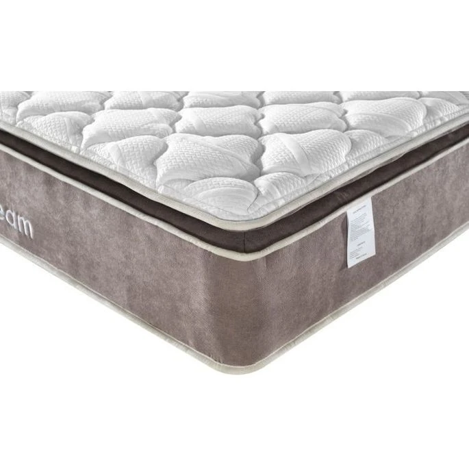 Partie supérieure dotée d’ un « Pillow top » : grand coussin cousu directement sur le matelas pour plus de confort.