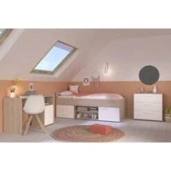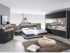 Ferrari PRICY Ensemble Lit 140×190 Cm + Armoire 3 Portes + 2 Chevets – Décor Chene Shannon Et