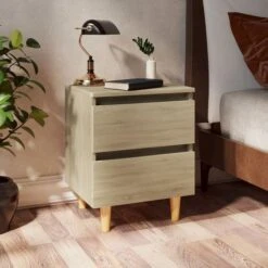 Tables De Chevet Pieds En Pin 2 Pcs Chêne Sonoma 40x35x50 Cm