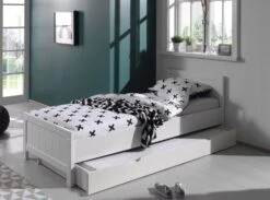 Chambre Enfant 4 Pièces Lit Gigogne Chevet Et Armoire 2 Portes Pin Massif Laqué Blanc Erik 90×200 Cm