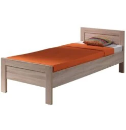 Chambre Enfant 5 Pièces Lit Chevet Armoire Bureau Et Bibliothèque Bois Chêne Clair Aline 90×200 Cm