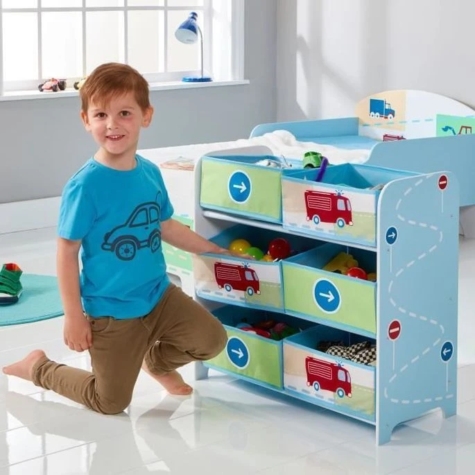 Chambre Enfant 5 Pièces Lit Chevet Coffre Et 2 étagères Bois Laqué Gris Et Pin Clair Kiddy 90×200 Cm
