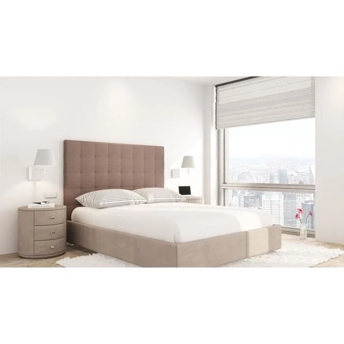 SOGNO Tete De Lit Capitonnée – Tissu Microfibre Creme – L 160 Cm