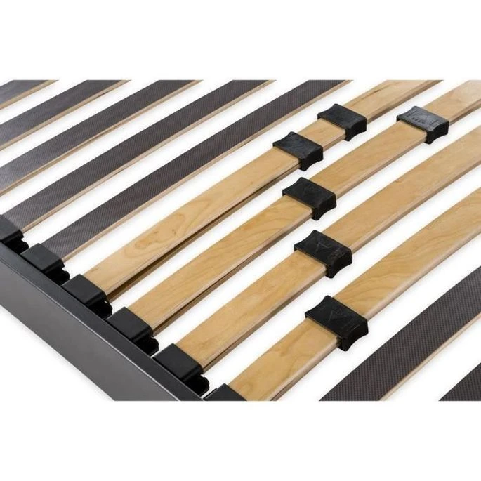 Nombre et type de lattes 20 lattes multiplis pour un grand confort: 4 sont réglables en fermeté via curseur pour la zone lombaire et 16 sont fixes. Largeur 50 mm pour une solidité accrue