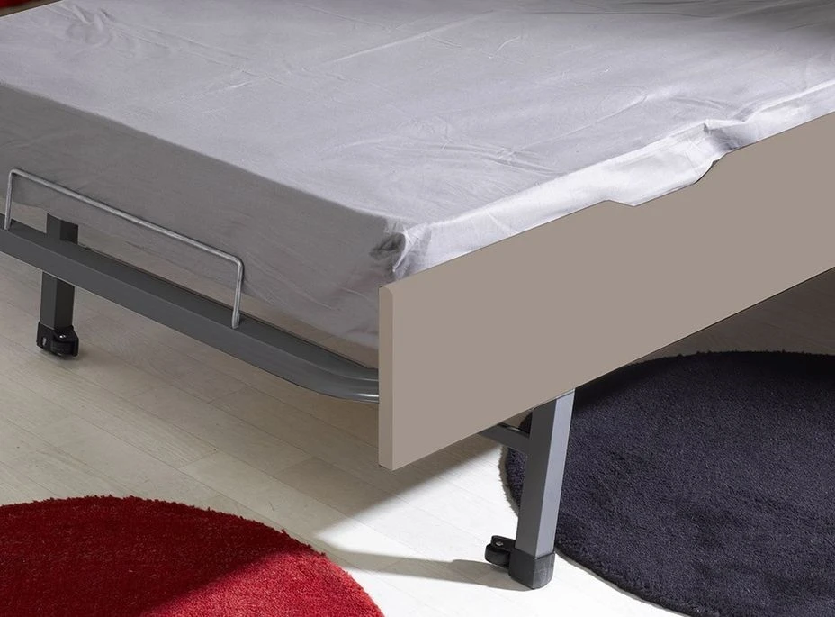 Il est fabriquéen bois MDF, son sommier escamotable est composé d’une structure métallique solide et facile à ranger sous le lit.